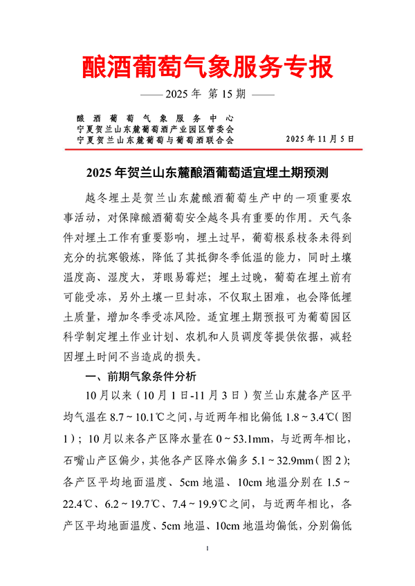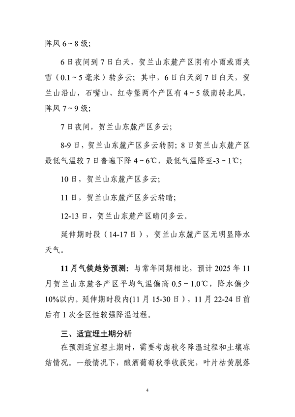 2025年贺兰山东麓酿酒葡萄适宜埋土期预测